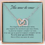 Le collier représente un beau symbole d’amour qui allie un design élégant et une profonde valeur émotionnelle. Doté d’un motif de deux cœurs entrelacés, ce collier représente l’unité et l’amour éternel, ce qui en fait le cadeau parfait pour un être cher.