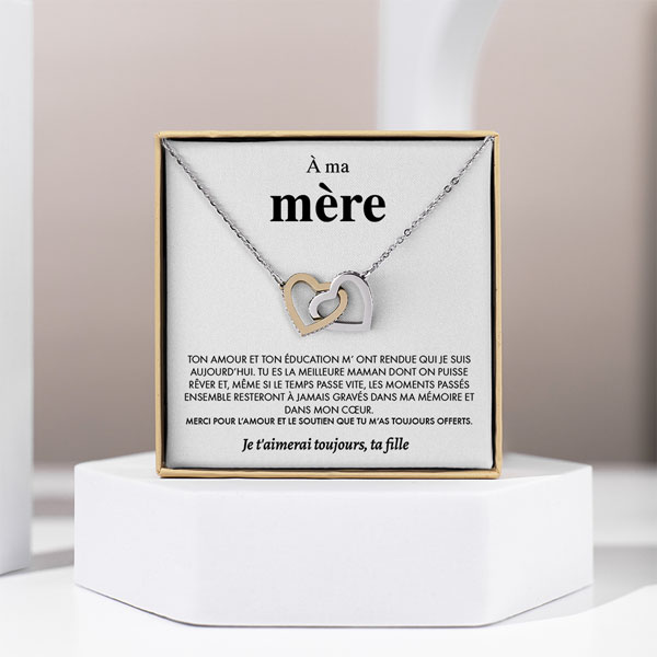Le collier représente un beau symbole d’amour qui allie un design élégant et une profonde valeur émotionnelle. Doté d’un motif de deux cœurs entrelacés, ce collier représente l’unité et l’amour éternel, ce qui en fait le cadeau parfait pour un être cher.