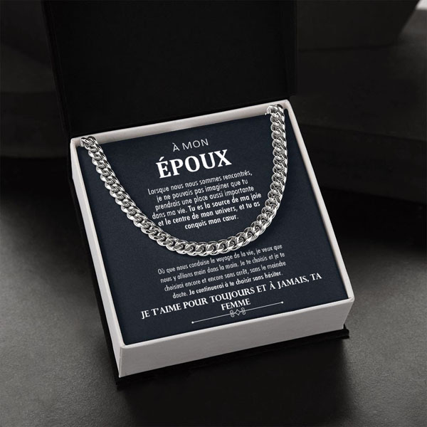 Offrez-lui un cadeau qui aura une valeur sentimentale pour toujours : un collier élégant avec une note personnelle d’amour, conçu spécialement pour lui. Laissez le collier devenir un symbole de vos sentiments, qu’il portera chaque jour près de son cœur.