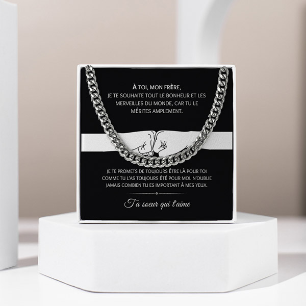 Offrez-lui un cadeau qui aura une valeur sentimentale pour toujours : un collier élégant avec une note personnelle d’amour, conçu spécialement pour lui. Laissez le collier devenir un symbole de vos sentiments, qu’il portera chaque jour près de son cœur.