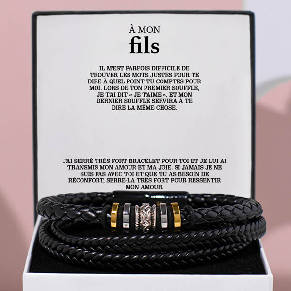 J’AI SERRÉ TRÈS FORT CE BRACELET POUR TOI ET JE LUI AI TRANSMIS MON AMOUR ET MA JOIE. SI JAMAIS JE NE SUIS PAS AVEC TOI ET QUE TU AS BESOIN DE RÉCONFORT, SERRE-LE TRÈS FORT POUR RESSENTIR MON AMOUR.
