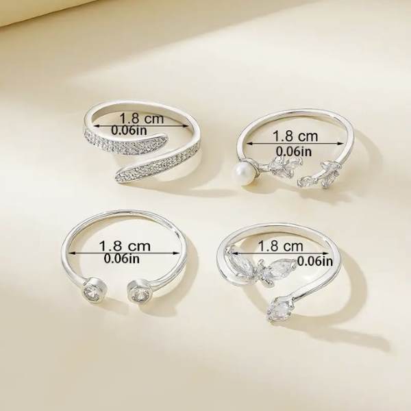 Cet ensemble présente des bagues simples et ouvertes, ornées d’un décor de zircons en forme de papillon, conçues pour les filles et les femmes qui apprécient l’élégance et la simplicité. 🦋💍
