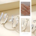 Cet ensemble présente des bagues simples et ouvertes, ornées d’un décor de zircons en forme de papillon, conçues pour les filles et les femmes qui apprécient l’élégance et la simplicité. 🦋💍