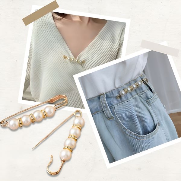💎 Bijou perlé : Ornée de fausses perles blanches et dorées, cette broche épingle présente des éléments perlés populaires, ajoutant une touche de glamour à votre look.