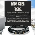 Le bracelet est conçu dans un style classique, ce qui en fait un choix parfait pour les hommes de tous âges. Le bracelet ajoute une touche de personnalité et d’unicité au look de tous les jours, car il se marie parfaitement avec les vêtements formels et décontractés. Il présente un design multicouche qui ajoute un charme particulier et une dimension très particulière à n’importe quel poignet. Le motif imbriqué crée un effet visuel époustouflant, alliant à la fois élégance et look moderne.
