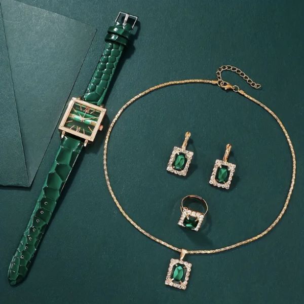 Cet ensemble chic comprend des montres à quartz vintage à aiguille carrée dans des teintes vertes saisissantes, complétées par une parure de bijoux en strass éblouissante, vous permettant à la fois d’élever votre style personnel et de partager l’élégance avec vos proches. 🎁⌚💚